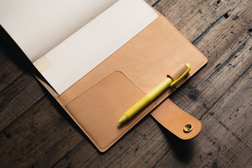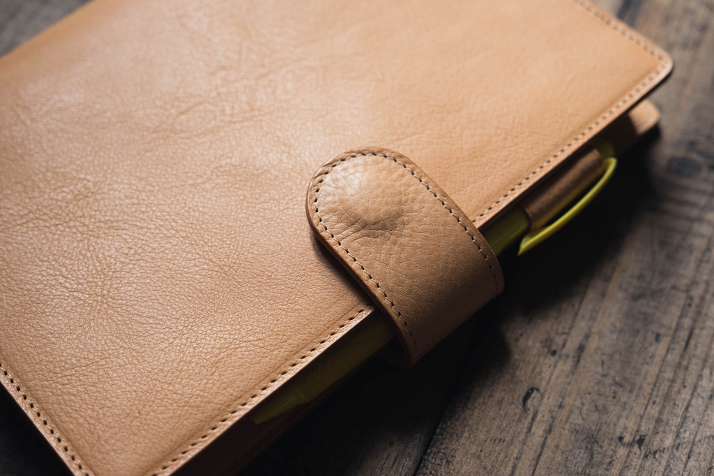 6 COLORS - A5/Hobonichi/Midori MD Natural Snap Closure Pebbled Leather Notebook Cover with Card Slots