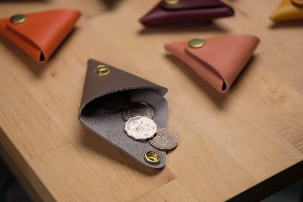 You're looking at a triangle coin purse/utility pouch made from Italian vegetable-tanned leather. The Origami-inspired design allows the purse to be opened from both the front and back. Fitted with solid brass snaps, keeps your belongings safe and secure, along with a satisfying "click" when opening/closing. The size of the coin case is not only great for coins but also for other small items like keys and guitar picks. Our purse is available in 13 different colors!
