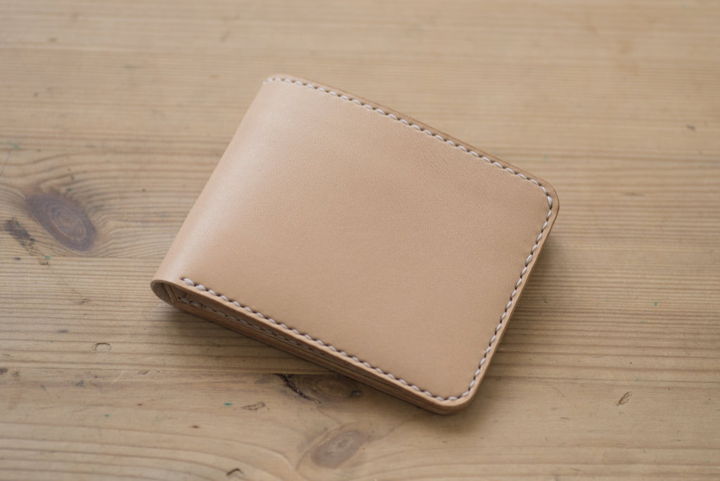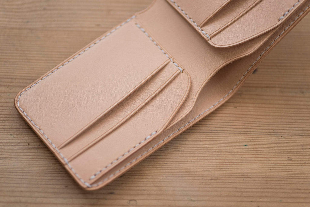 This wallet is the little brother of our classic billfold, designed to fit smaller bank notes. US and Canadian bank notes would fit perfectly in this wallet, yet having a slightly smaller footprint. The wallet is done completely by hand with saddle stitching and hand-burnished edges and bevels. Made from natural vegetable tanned cow leather, it features four card slots, two hidden slots, and a bill compartment—enough for all of your daily necessities. The stitching is reinforced at the stress points so it won’t come apart, even with a good yank.