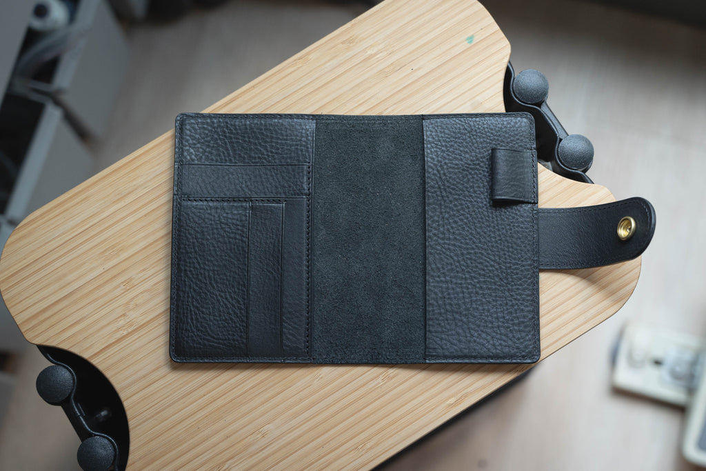 This notebook cover is made for pocket-sized notebooks with a size of 140mm x 90mm x 15mm (5.5"x 3.5"x 0.6"). The recommended thickness of the notebooks would be 13mm (~0.45") to 20mm (~0.75"). If you would like the cover to anything thicker or thinner, we would gladly make a custom order for you.