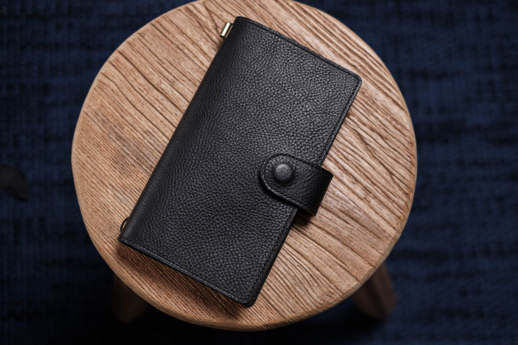 ALL SIZES - Black Pebbled Leather Stitched Traveler's Notebook w/ Strap Closure (No inserts included)
