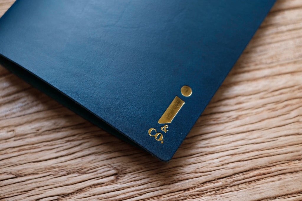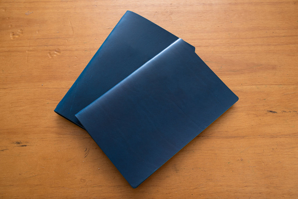 12 Colors - Letter-sized Menu Covers, Buttero Italian Vegetable Tanned Leather in Navy Blue (8.5x11) - Malloria