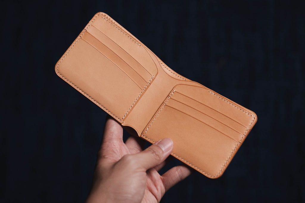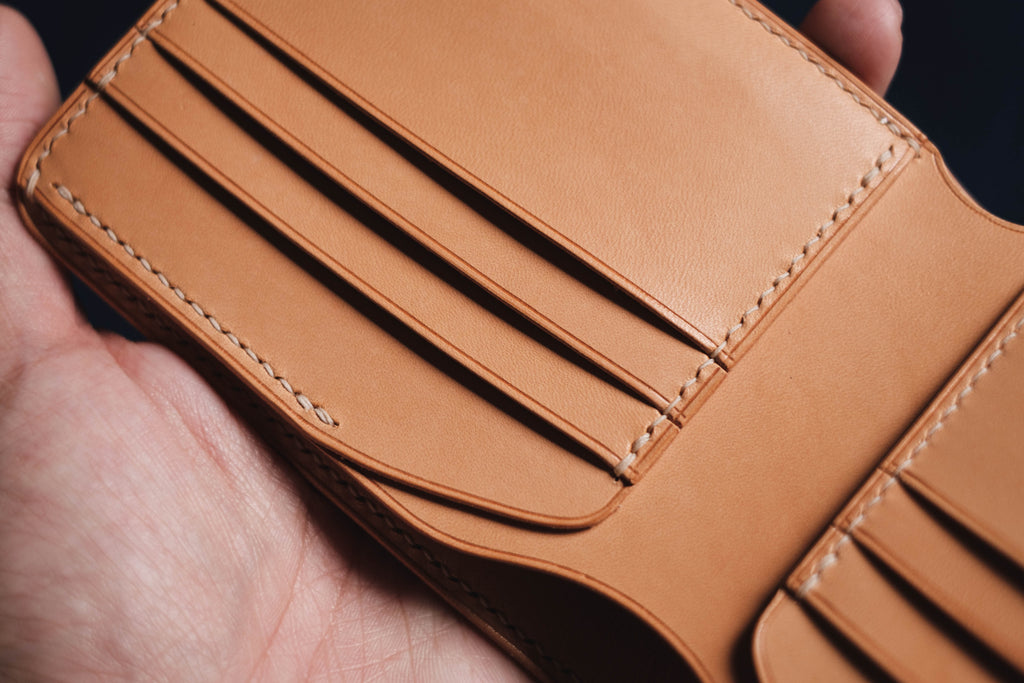A classic bifold wallet made from a combination of top-notch leathers, this wallet is done completely by hand with saddle stitching and hand-burnished edges and bevels. Made from a piece of Shinki Hikaku shell cordovan leather outer and natural undyed vegetable tanned cow leather interior, it features six card slots, two hidden slots, and a bill compartment—enough for all of your daily necessities. The stitching is reinforced at the stress points so it won’t come apart, even with a good yank.