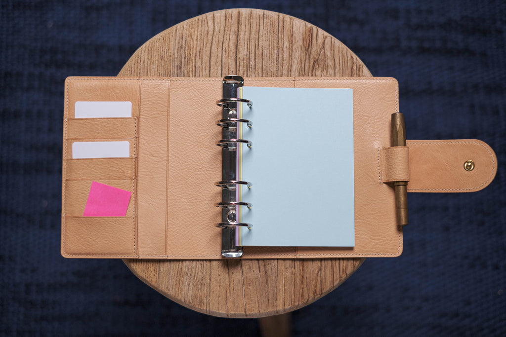 Personal/A6 Natural Pebble Leather Ring Organizer